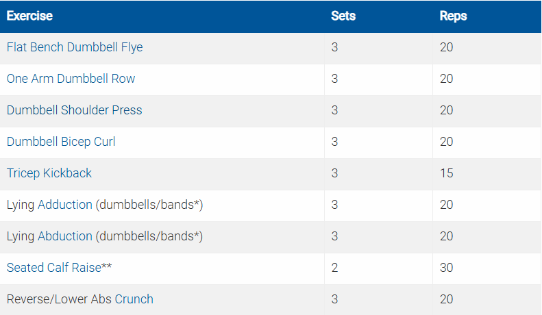Đây là chương trình 7 ngày rèn luyện tổng hợp, phù hợp cho phụ nữ mới bắt đầu, đặc biệt là những ai chưa từng tập tạ.