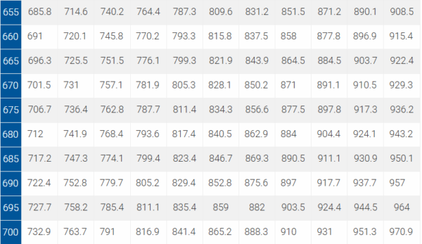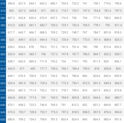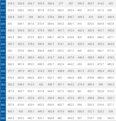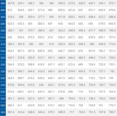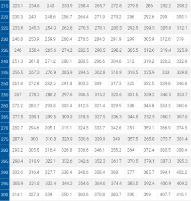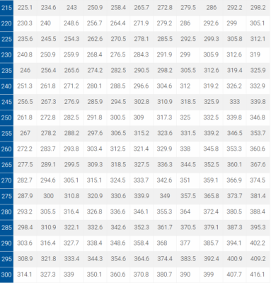 Bảng đầu tiên: sử dụng đơn vị pounds (lbs).