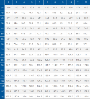 Bảng tính Bench Press tối đa là phương pháp “truyền thống” để ước tính mức tạ tối đa bạn có thể đẩy trong 1 lần lặp (1RM). Hãy sử dụng bảng này như một công cụ tham khảo để biết bạn có thể đẩy ngực được bao nhiêu cho 1 rep tối đa.