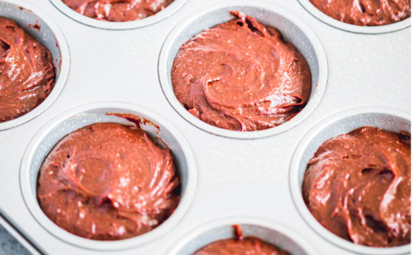 Làm nóng lò nướng trước ở 350°F (≈175°C). Trong lúc lò nóng, thoa dầu vào khuôn muffin. (Bạn cũng có thể dùng khuôn nướng vuông/ chữ nhật thay thế).