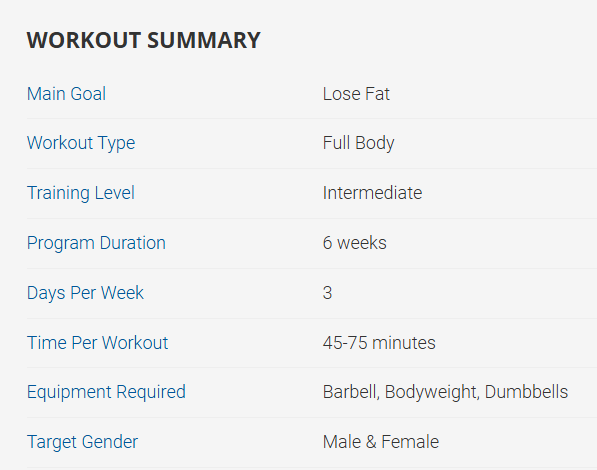Cardio: Sau khi hoàn thành mỗi vòng Full Body Fat Loss Circuit, bạn sẽ thực hiện thêm 8 phút HIIT (High Intensity Interval Training) trên máy cardio mà bạn yêu thích — có thể là máy chạy bộ, xe đạp, máy chèo thuyền hoặc máy leo cầu thang.