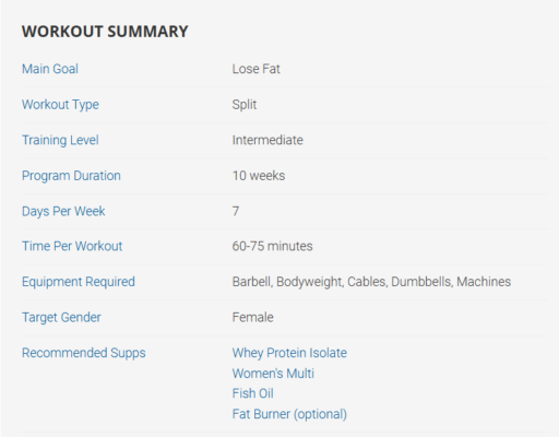 Chương trình tập luyện kéo dài 10 tuần này hoàn hảo cho mọi phụ nữ khỏe mạnh đang muốn giảm mỡ thừa thông qua một chương trình kết hợp giữa tập tạ và cardio hiệu quả.