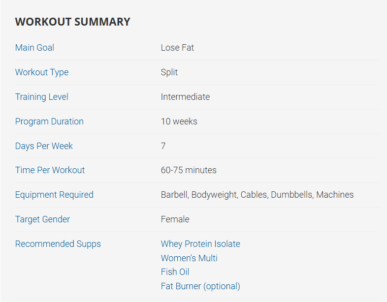 Chương trình tập luyện kéo dài 10 tuần này hoàn hảo cho mọi phụ nữ khỏe mạnh đang muốn giảm mỡ thừa thông qua một chương trình kết hợp giữa tập tạ và cardio hiệu quả.
