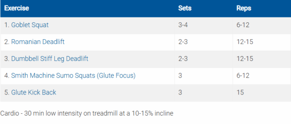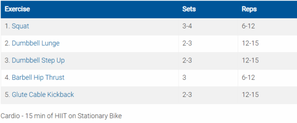Phần thân dưới được tập 3 buổi/tuần, tập trung mạnh vào mông và chân.