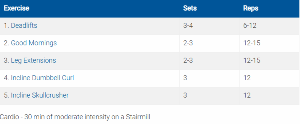 Phần thân trên được tập 2 buổi/tuần, hướng đến việc làm săn chắc và định hình cánh tay.