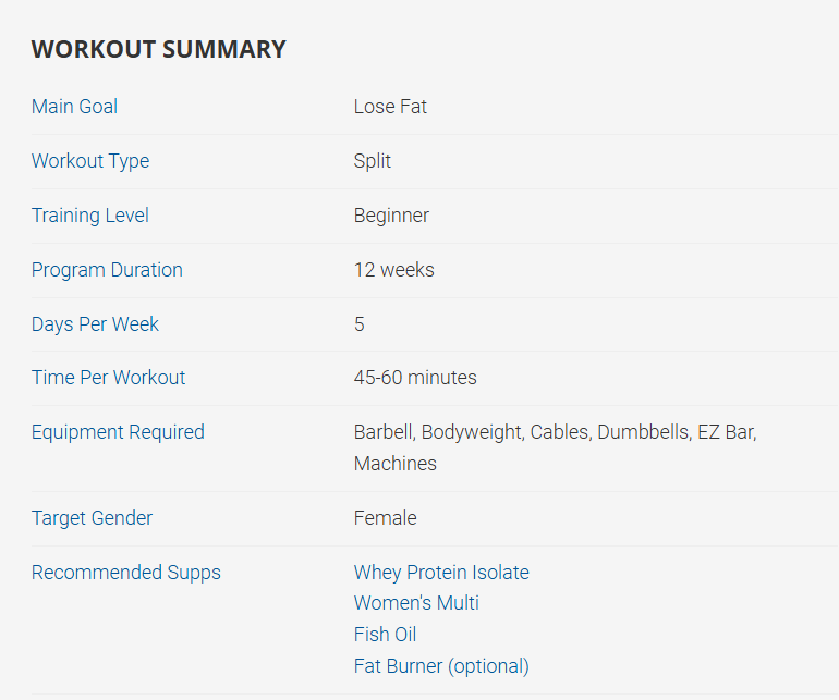 Chương trình tập luyện 12 tuần dành riêng cho phụ nữ này là lựa chọn hoàn hảo cho bất kỳ ai có sức khỏe tốt và mong muốn thay đổi vóc dáng thông qua một chương trình tập tạ hiệu quả.