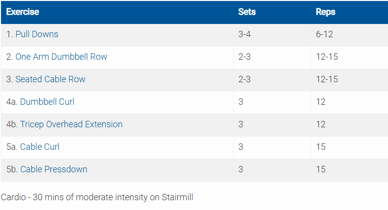 Thứ Ba: Lưng & Tay + Cardio (tùy chọn)