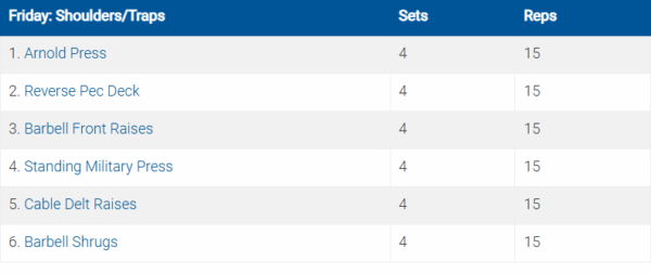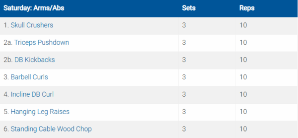Các bài tập được ký hiệu bằng số và chữ cái (ví dụ: 5a. Crunches5b. Planks) là các bài được thực hiện theo hình thức superset (tập liên hoàn).