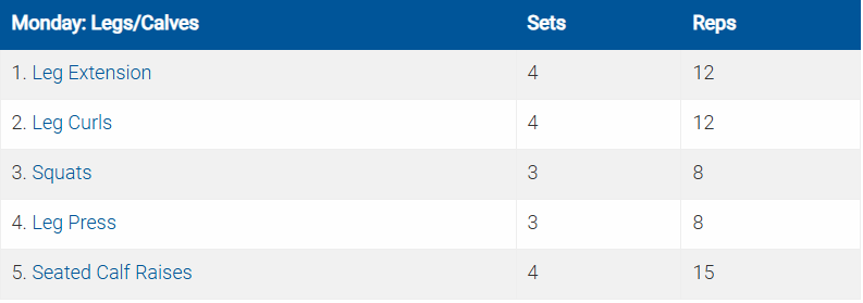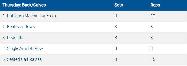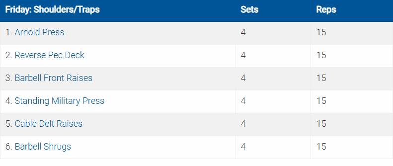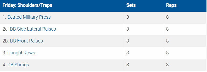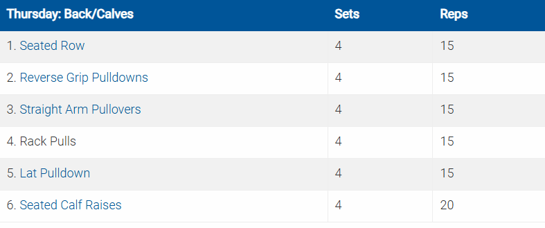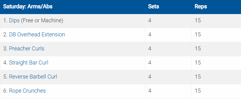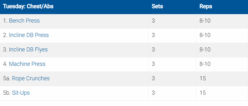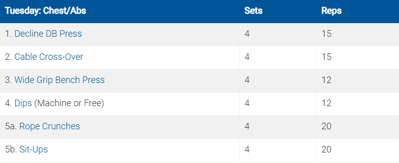 Các bài tập được ký hiệu bằng số và chữ cái (ví dụ: 5a. Crunches5b. Planks) là các bài được thực hiện theo hình thức superset (tập liên hoàn).