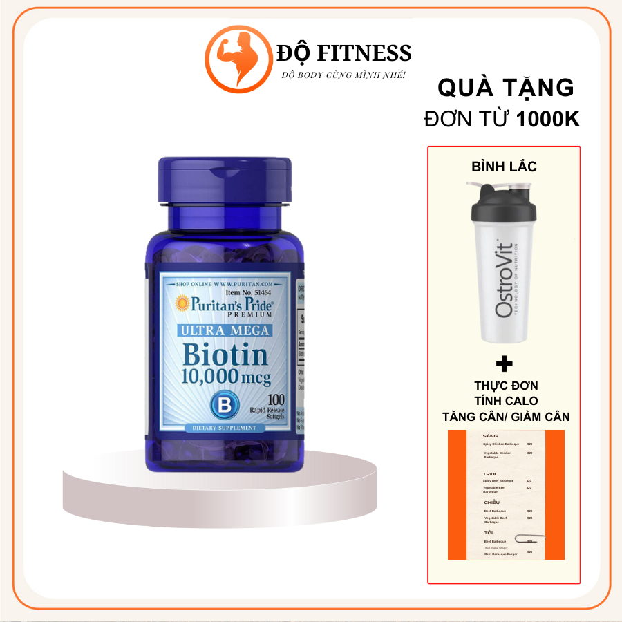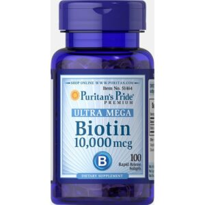 Viên uống Puritan’s Pride Biotin 100 viên 10,000mcg hỗ trợ ngăn rụng tóc, làm đẹp da, móng