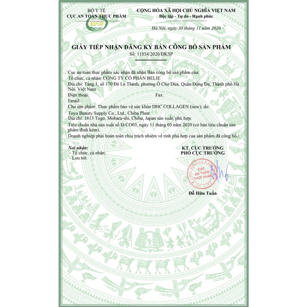 – Collagen là chìa khóa mở ra sự trẻ trung, đóng vai trò quan trọng trong việc duy trì làn da căng mịn, sáng bóng và khỏe khoắn. Vì lượng collagen sẽ suy giảm theo tuổi tác nên việc bổ sung một lượng cố định collagen mỗi ngày là rất cần thiết. 2050mg thành phần collagen peptide trong viên uống collagen DHC là loại collagen thuỷ phân mà cơ thể dễ hấp thụ, đem lại hiệu quả về dưỡng ẩm và cải thiện độ đàn hồi của da.