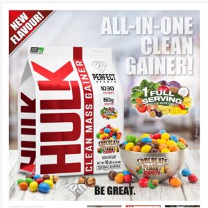 – Một khẩu phần Hulk Clean Mass Gainer cung cấp nguồn dưỡng chất dồi dào để hỗ trợ sức khỏe tổng thể với 14 loại vitamin, khoáng chất từ nguồn dinh dưỡng thực vật (hỗn hợp 11 loại trái cây).