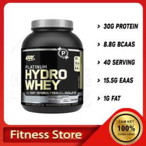 Platinum Hydrowhey® la Proein tinh khiết nhất. Nó được tạo ra bởi việc thủy phân Whey Protein giúp loại bỏ gần hết các thành phần như Lactose, Cholesterol, Carbohydrates và chất béo. Kết quả là 1 sản phẩm tinh khiết nhất, dễ dàng hấp thụ giúp xây dựng cơ bắp hiệu quả.
