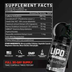 – Tăng năng lượng & Kiểm soát sự thèm ăn: Cung cấp năng lượng thông qua chế độ ăn uống của mình, mỗi viên LIPO-6 HARDCORE mang đến một sự tăng cường năng lượng mạnh mẽ và hỗ trợ bạn kiểm soát tốt hơn sự thèm ăn của mình.