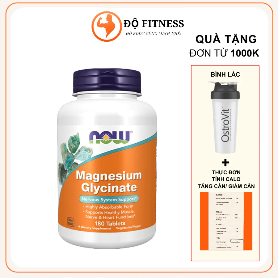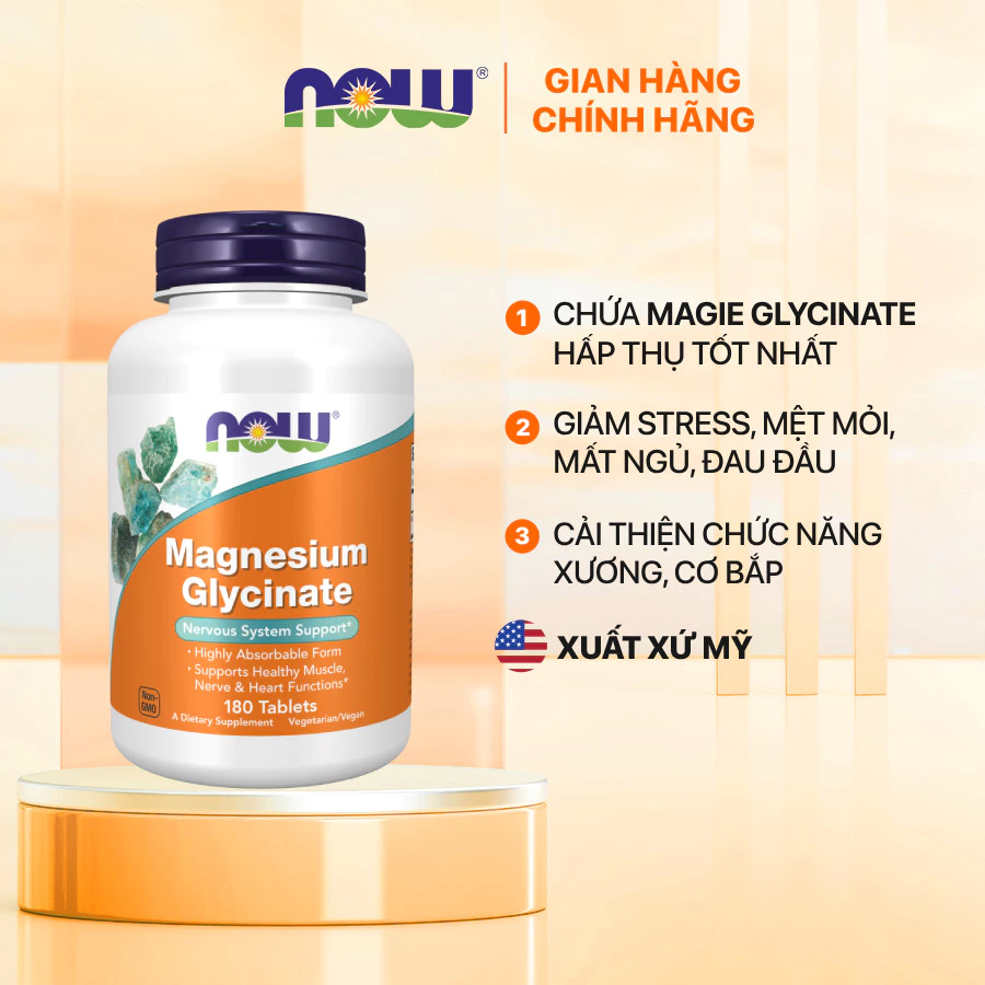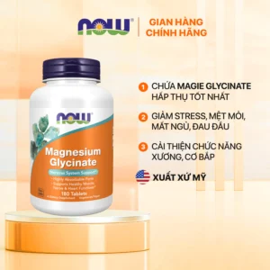 Magnesium Glycinate Now 180 viên 200 mg – Viên Magie Hữu Cơ, Giảm Stress, Hỗ Trợ Giấc Ngủ, Xương, Cơ, Hỗ trợ sức khỏe