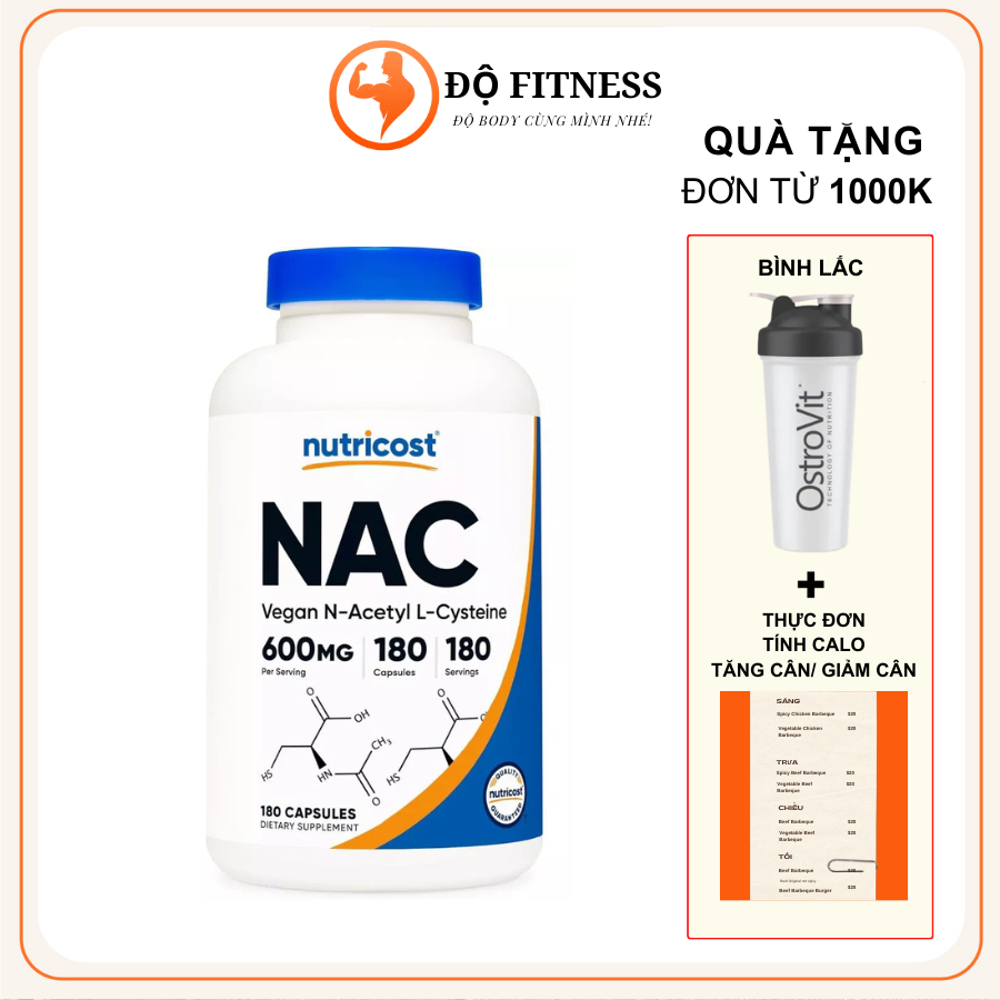 Nutricost Nac 600mg Thực Phẩm Bổ Sung Bảo Vệ Gan, Giải Độc Gan, Giúp Mát Gan (180 Viên)