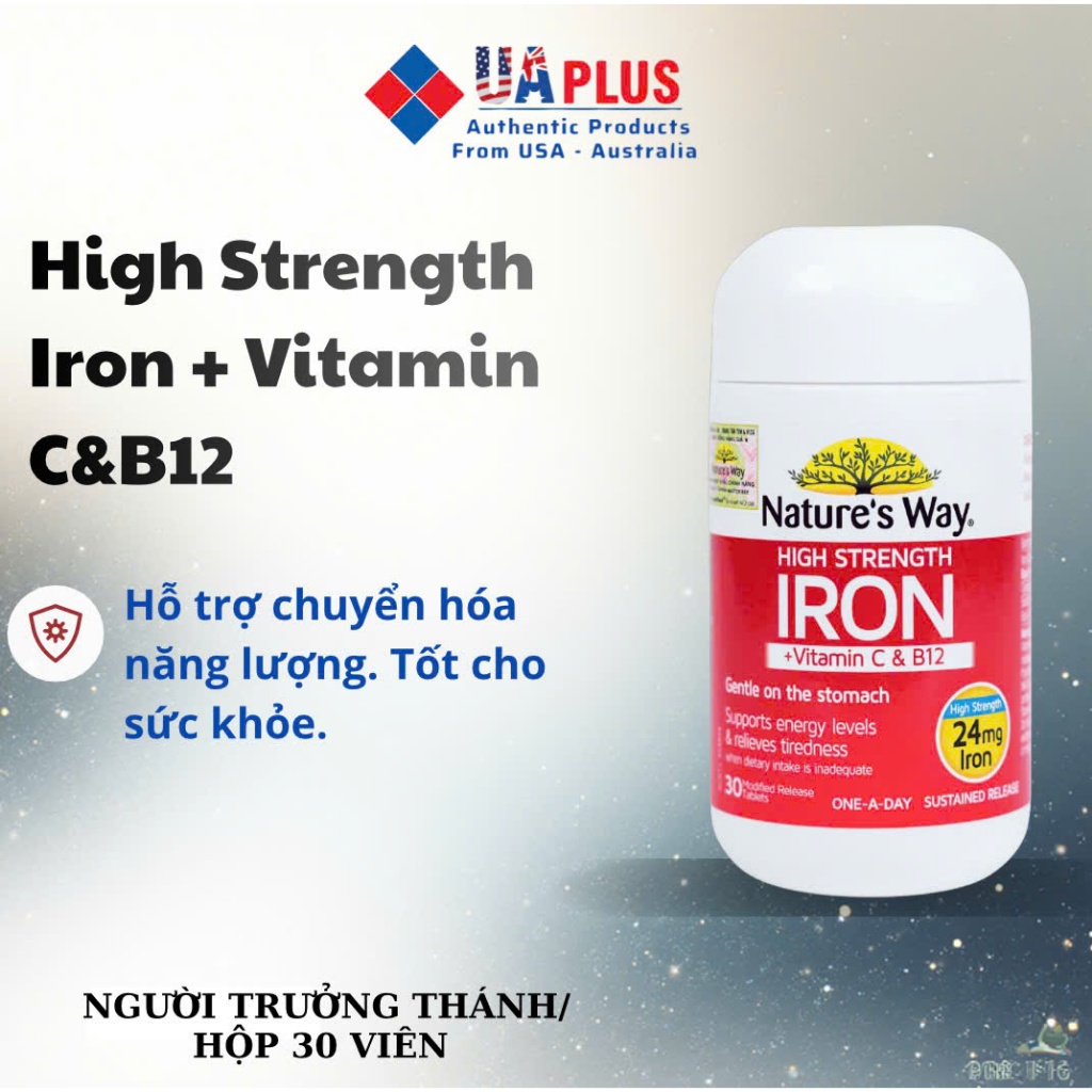 Tên sản phẩm: Nature’s Way High Strength Iron + Vitamin C&B12