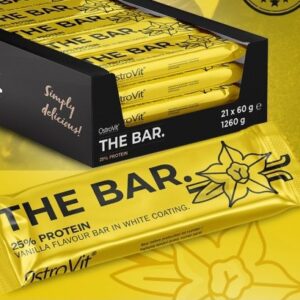 – OstroVit THE BAR có sẵn trong ba phiên bản ngon: sô cô la, vani và dâu tây. Tùy thuộc vào biến thể, thanh được phủ một lớp đá màu tối hoặc màu trắng tạo nên nét đặc trưng cho nó và hoàn toàn phù hợp với tổng thể, tạo ra một món ăn nhẹ thực sự.