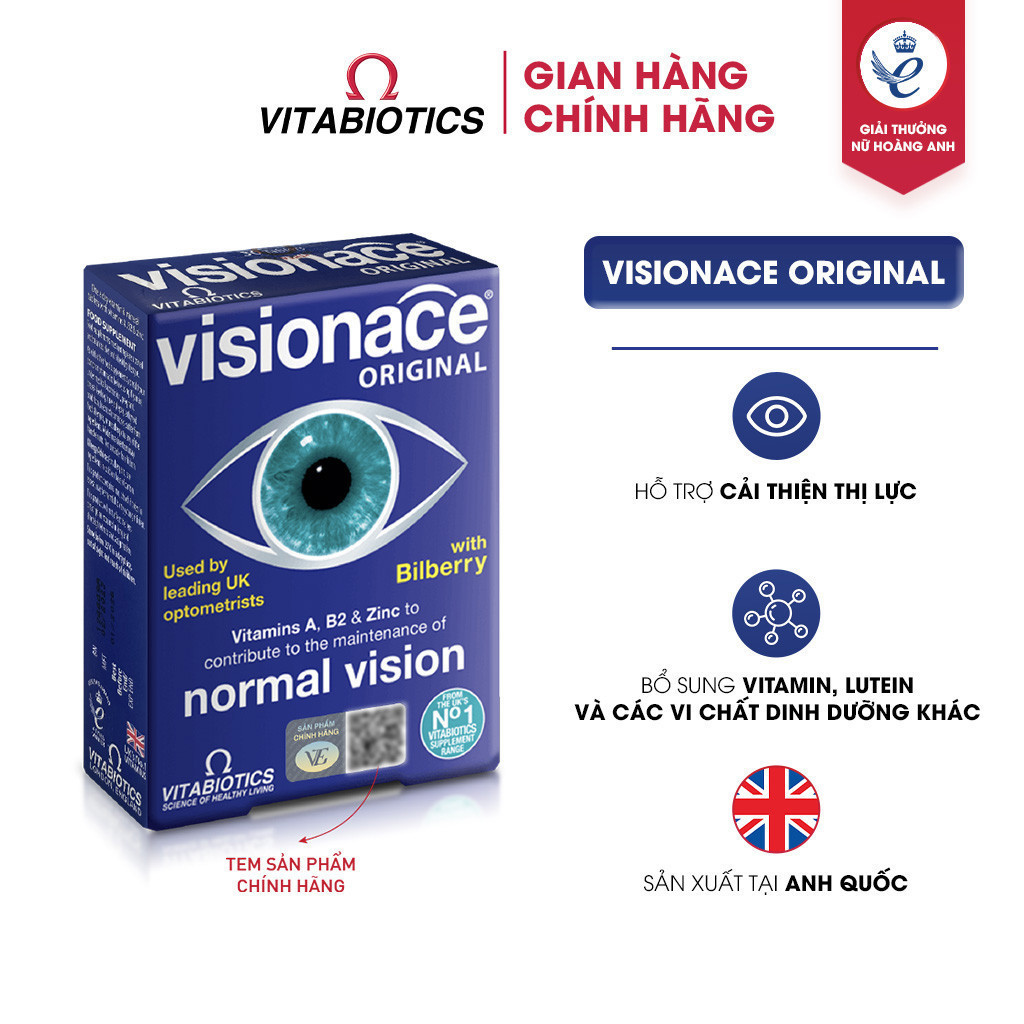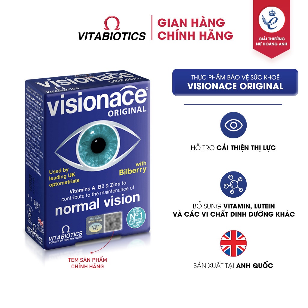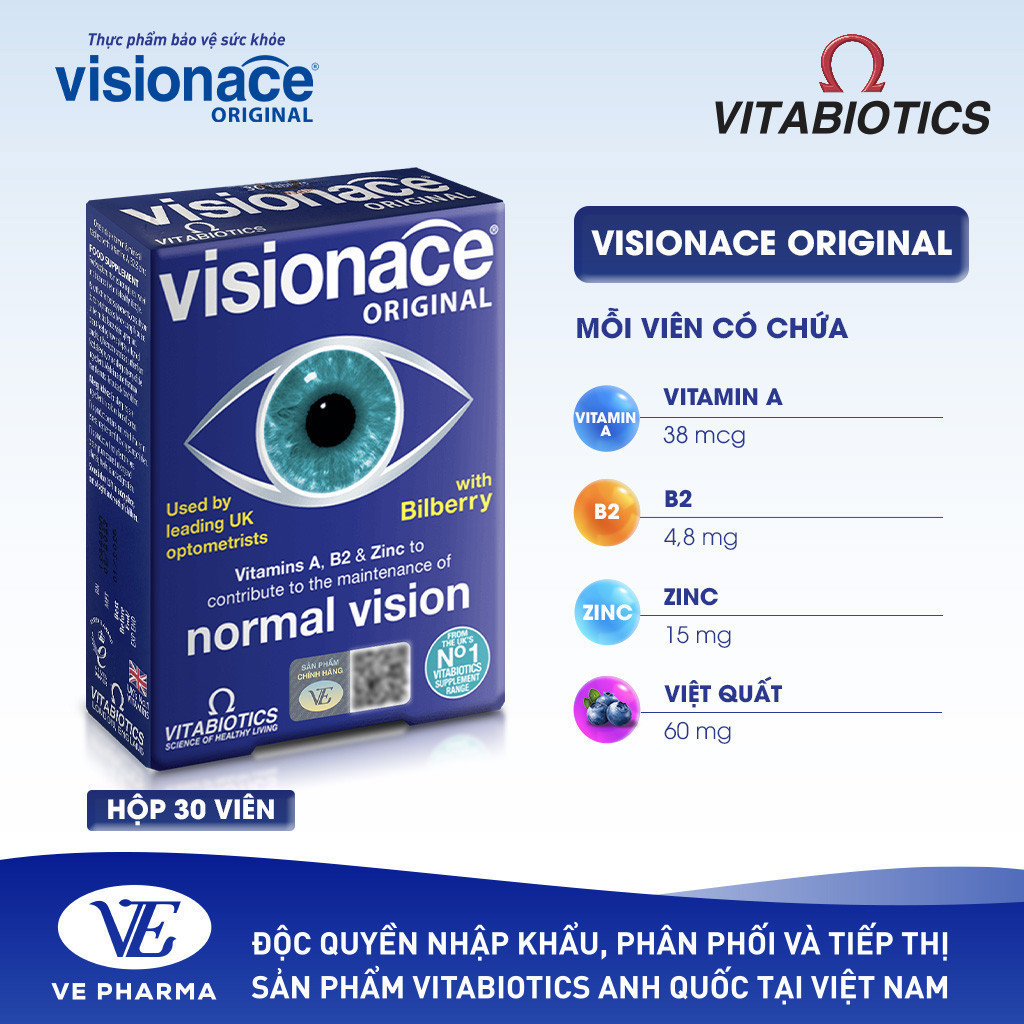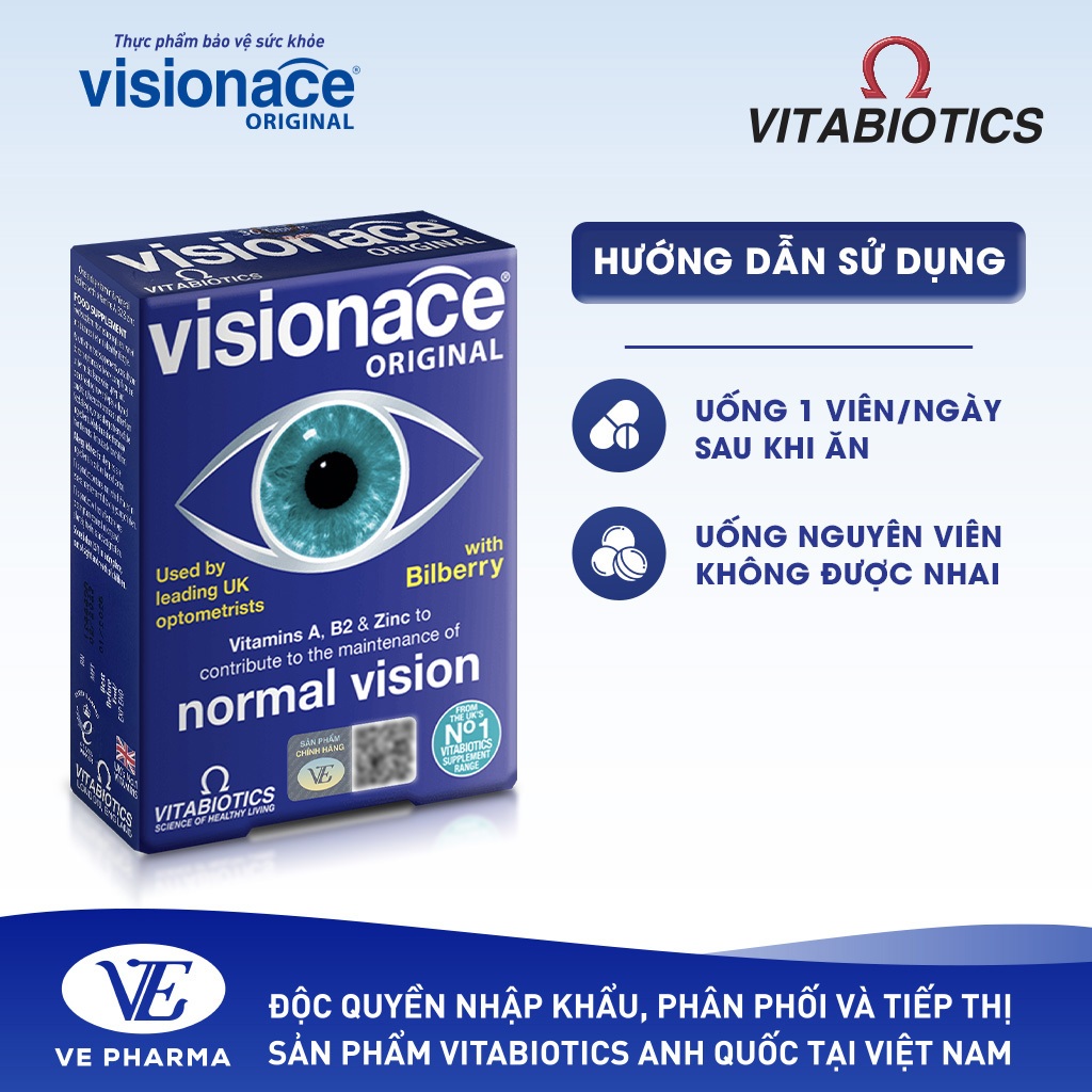 Thực Phẩm Bảo Vệ Sức Khỏe VISIONACE ORIGINAL Hỗ Trợ Cải Thiện Thị Lực Hộp 30 Viên Vitabiotics