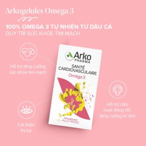 Viên uống dầu cá Arkopharma Arkogelules Omega 3 với công thức đặc biệt chứa dầu cá tự nhiên, cung cấp omega 3 giúp duy trì sức khỏe tim mạch.