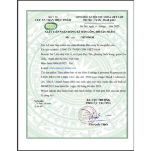 Sản phẩm được nhập khẩu chính hãng từ Mỹ và sản xuất trong nhà máy đạt chuẩn cGMP – chứng nhận cao cấp ban hành bởi FDA Hoa Kỳ.