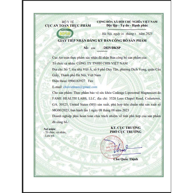 Sản phẩm này không phải thuốc và không có tác dụng thay thế thuốc chữa bệnh