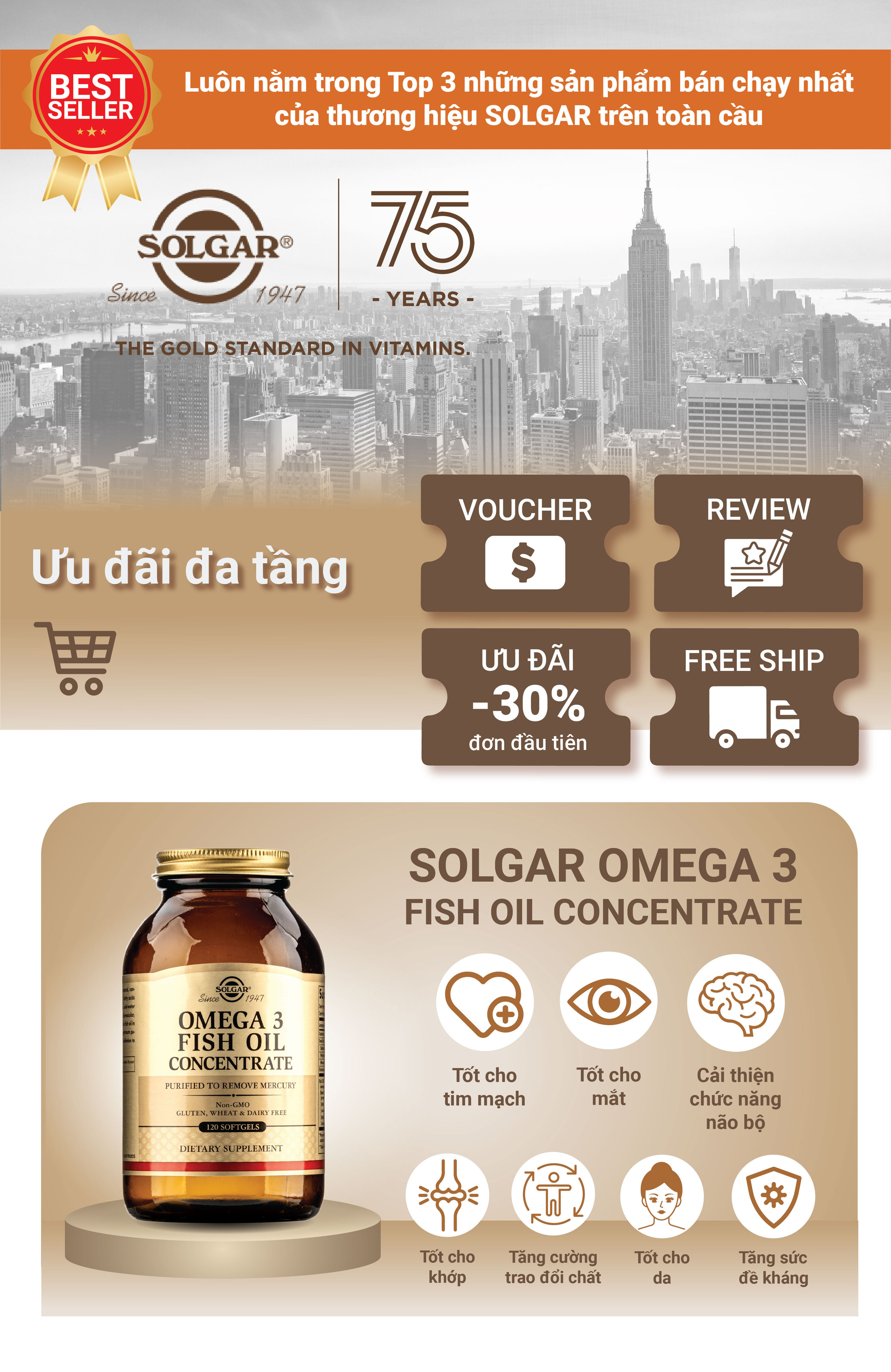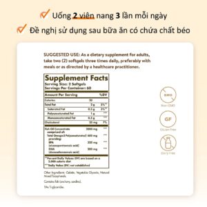 – Hỗ trợ sức khỏe não bộ, mắt và tim mạch; Omega 3 góp phần hỗ trợ thị lực và chức năng tim mạch; Cũng hỗ trợ sức khỏe tim mạch, khớp và trao đổi chất