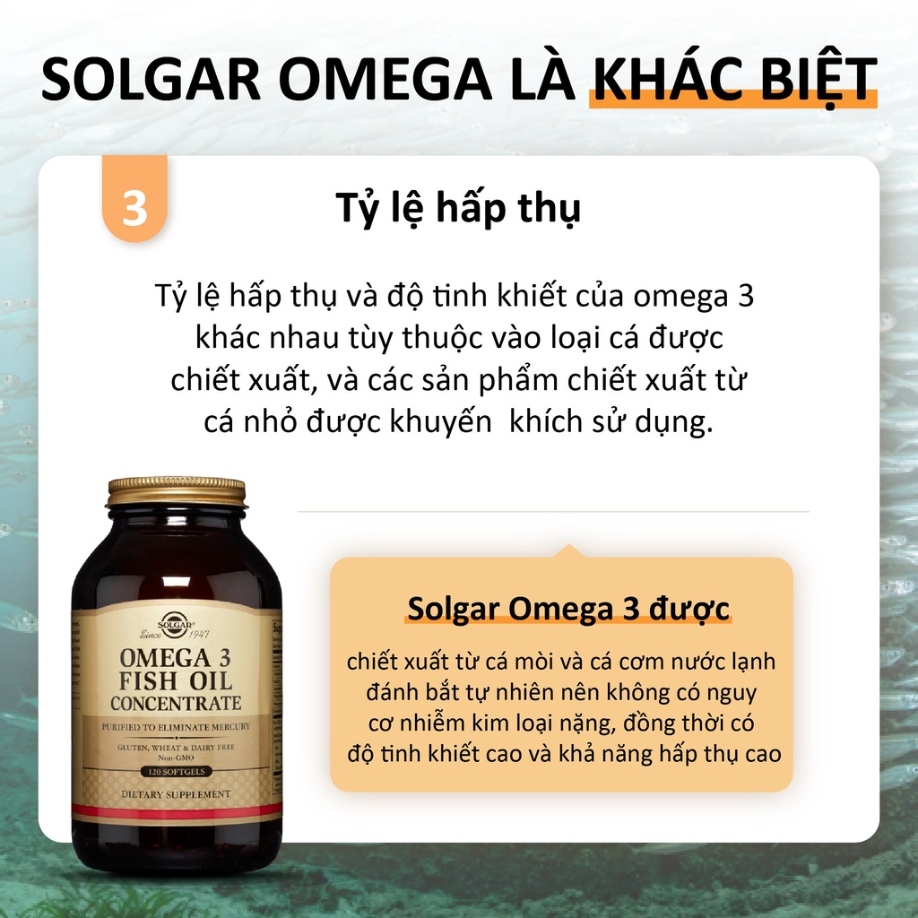– Viên nang mềm Solgar Omega 3 Fish Oil Concentrate 1000 mg được tinh chế thông qua quá trình chưng cất phân tử để loại bỏ thủy ngân và các tạp chất môi trường khác
