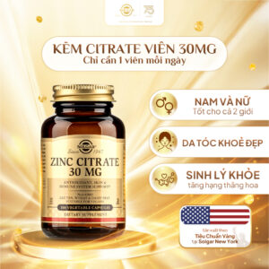 Viên Uống Solgar Zinc Citrate 30Mg – Bổ Sung Kẽm Và Chăm Sóc Sức Khỏe Phái Nam [Lọ 100 Viên]