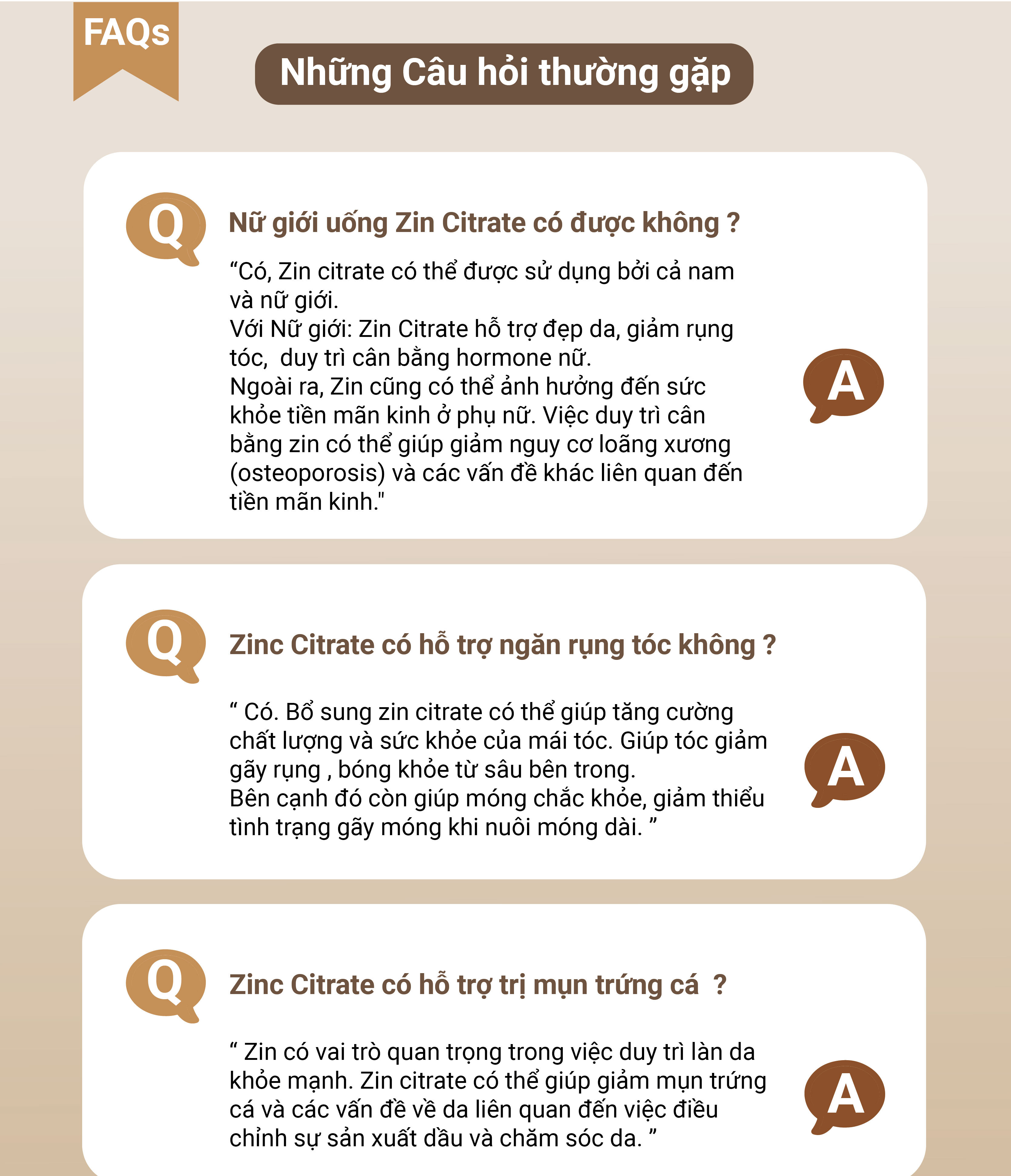 Hỗ trợ Collagen; Kẽm góp phần giúp da, móng và tóc khỏe mạnh; Nó đóng một vai trò trong việc tổng hợp collagen trong mô xương