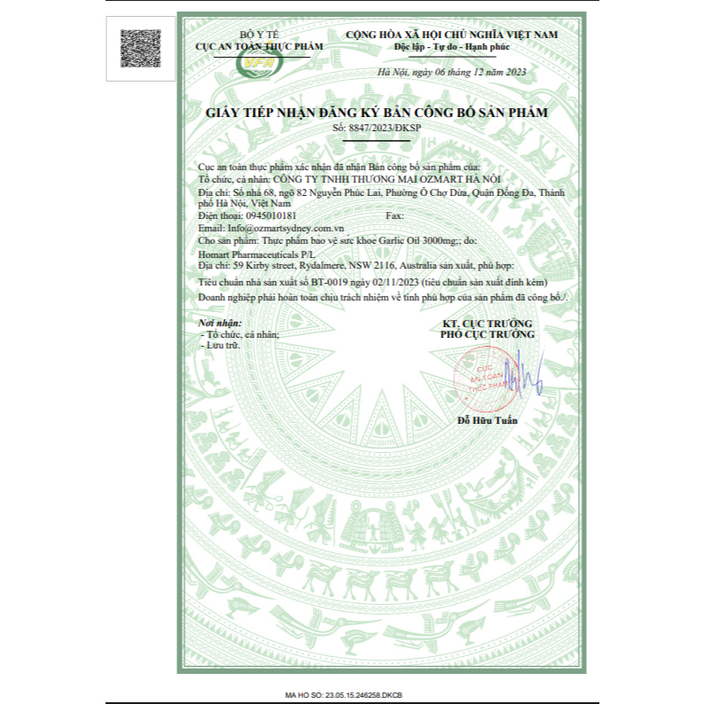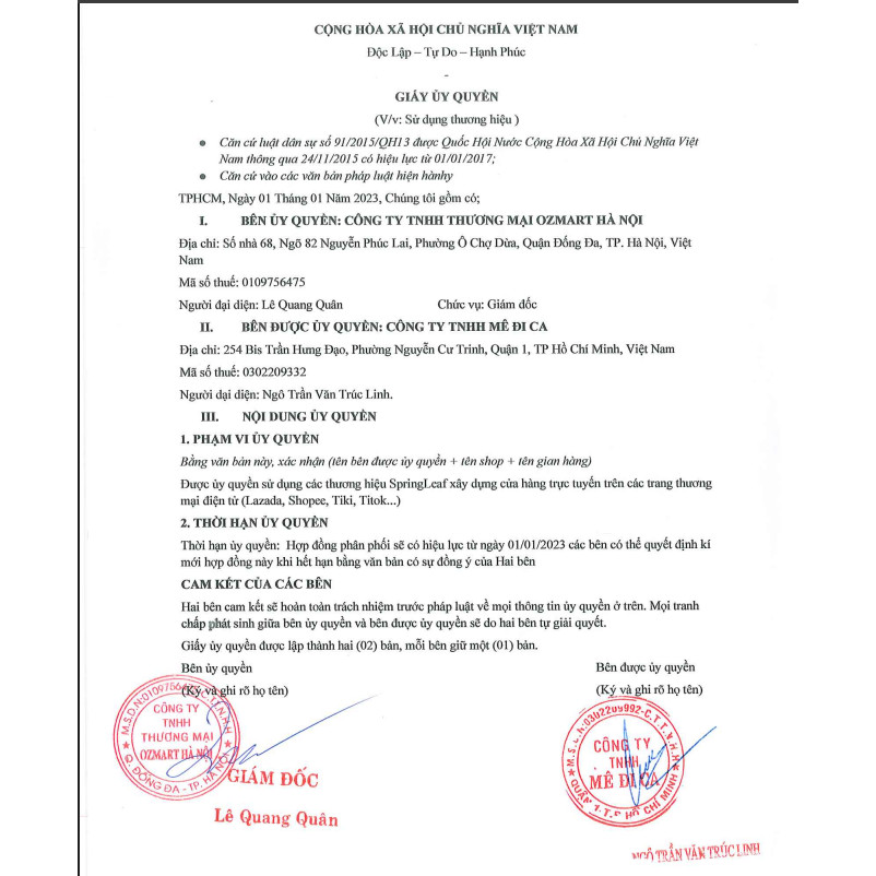Nhà sản xuất/ Nhà phân phối: CÔNG TY TNHH THƯƠNG MẠI OZMART HÀ NỘI.