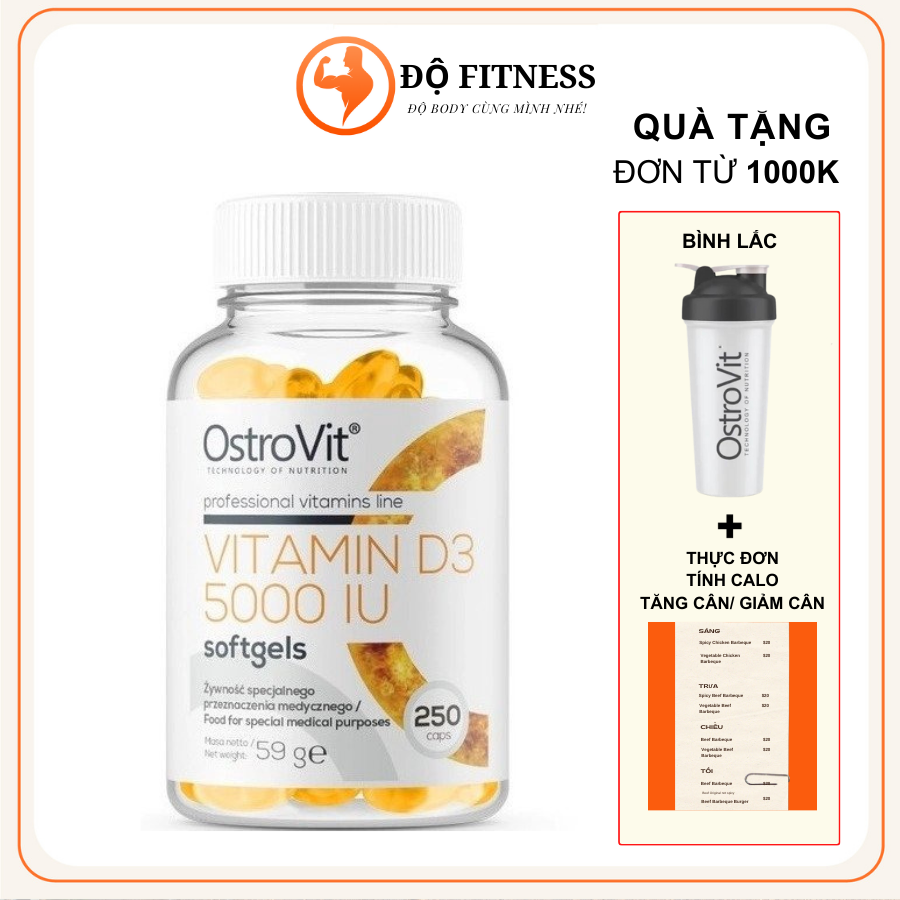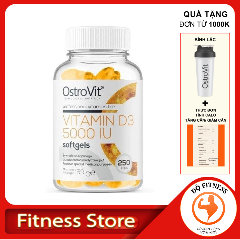 Vitamin D3 5000 IU Ostrovit 250 viên Thực Phẩm Bổ Sung Tăng Sức Đề Kháng, Hệ Miễn Dịch, Săn Chắc Xương, hỗ trợ cơ bắp