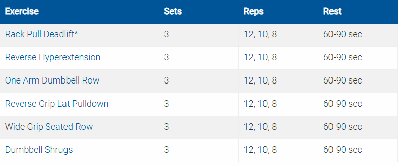Chương trình này bao gồm 6 buổi tập mỗi tuần, tập trung phát triển từng nhóm cơ riêng biệt. Mỗi buổi kéo dài khoảng 60–90 phút, bao gồm cả thời gian khởi động và chuẩn bị.